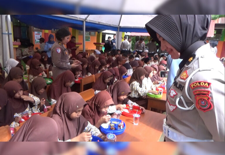 KENDARI-Direktorat Lalu Lintas Kepolisian Daerah Sulawesi Tenggara (Ditlantas Polda Sultra) menggelar Makan Sehat dan Bergizi dirangkaikan dengan Edukasi Operasi Keselamatan Anoa 2025 di Sekolah Dasar Negeri (SDN) 70 Kendari, Jumat (14/2/2024).