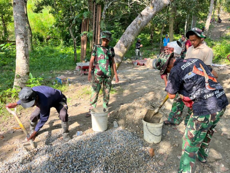 Material demi material mulai dicampur dengan presisi untuk memastikan kualitas bangunan yang kokoh guna menunjang aktivitas masyarakat setempat di masa mendatang.